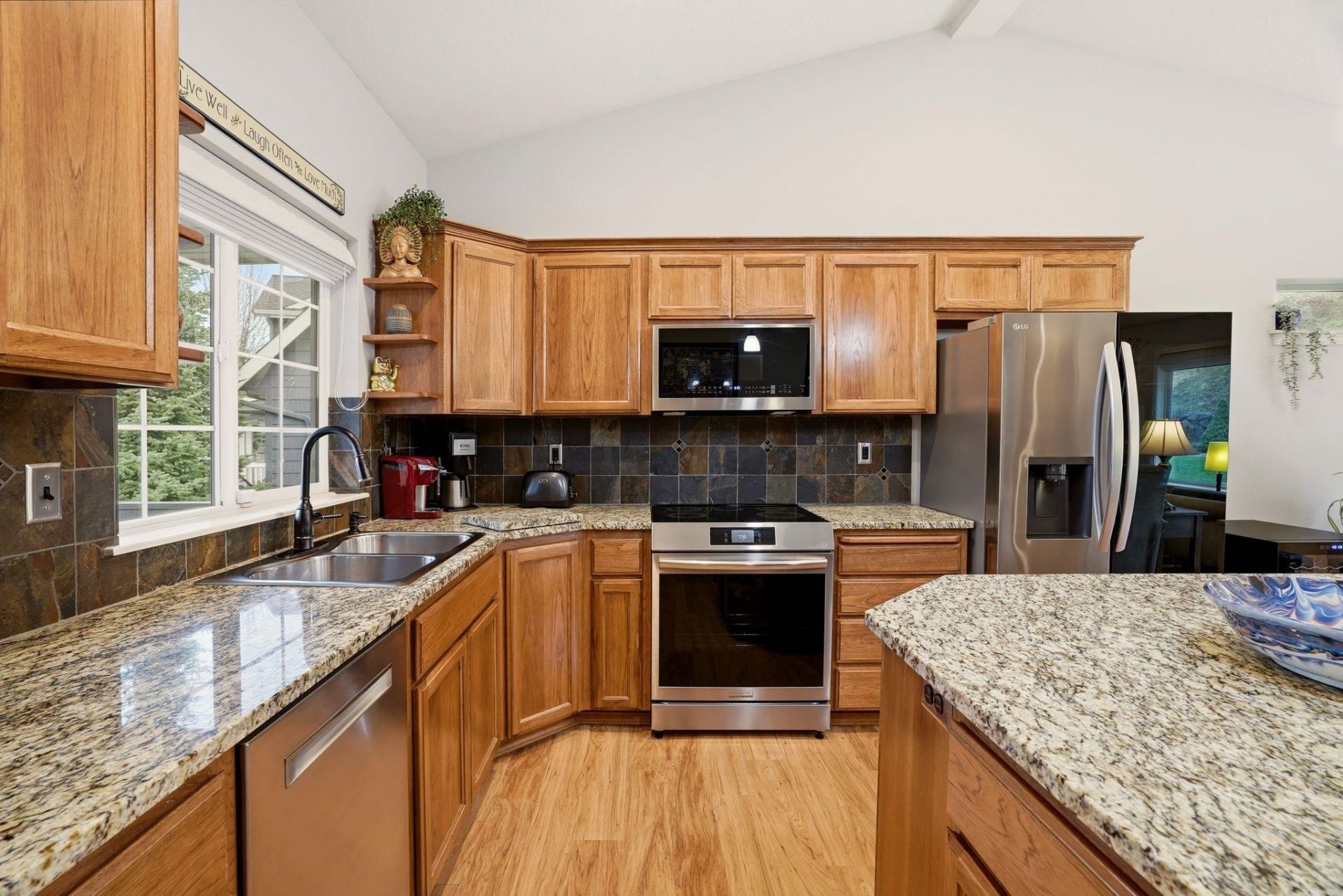 Meticulously maintained rancher built by highly sought-after Paras Homes in Eagle Ridge! Built in 2011, this 3 bed 2 bath home offers a bright & inviting open-concept, filled with natural light throughout. The spacious primary suite provides a comfortable retreat, while the kitchen is well-appointed with granite countertops, stainless steel appliances, an island with ample storage & a convenient eat-bar, & induction stove (with a gas connection still in place for those who prefer gas cooking). Step outside to a beautifully landscaped backyard, featuring an expansive patio & firepit area. A standout feature is the shed with electricity- ideal for hobbies, a workshop, or private office space. Additional updates include a new water heater (2023), new washer & dryer, & a new microwave. Located in a quiet neighborhood with exceptional amenities, including parks, walking trails, sports court, a splash pad, & summer movie nights, this home offers the perfect balance of comfort, community, & convenience.